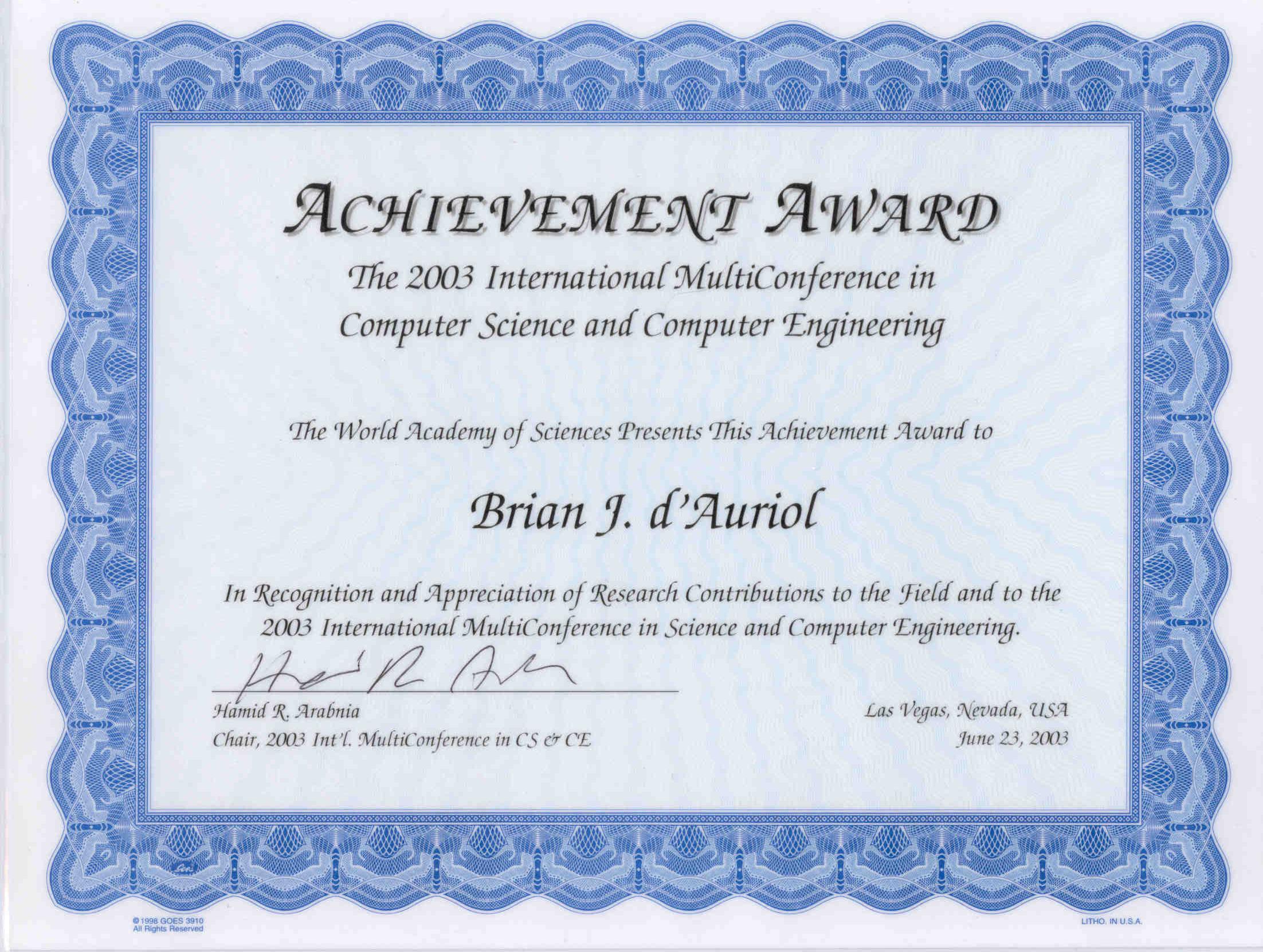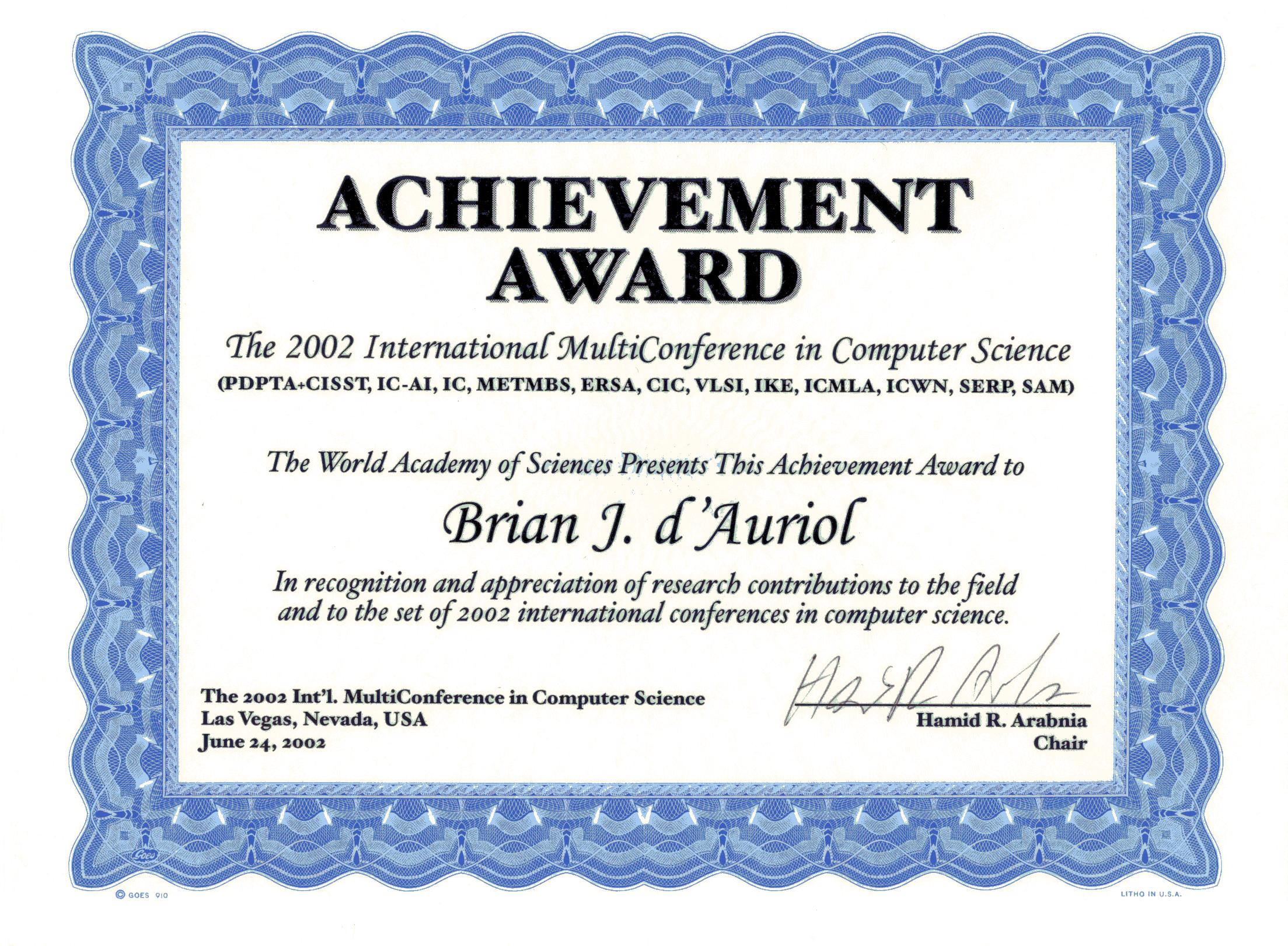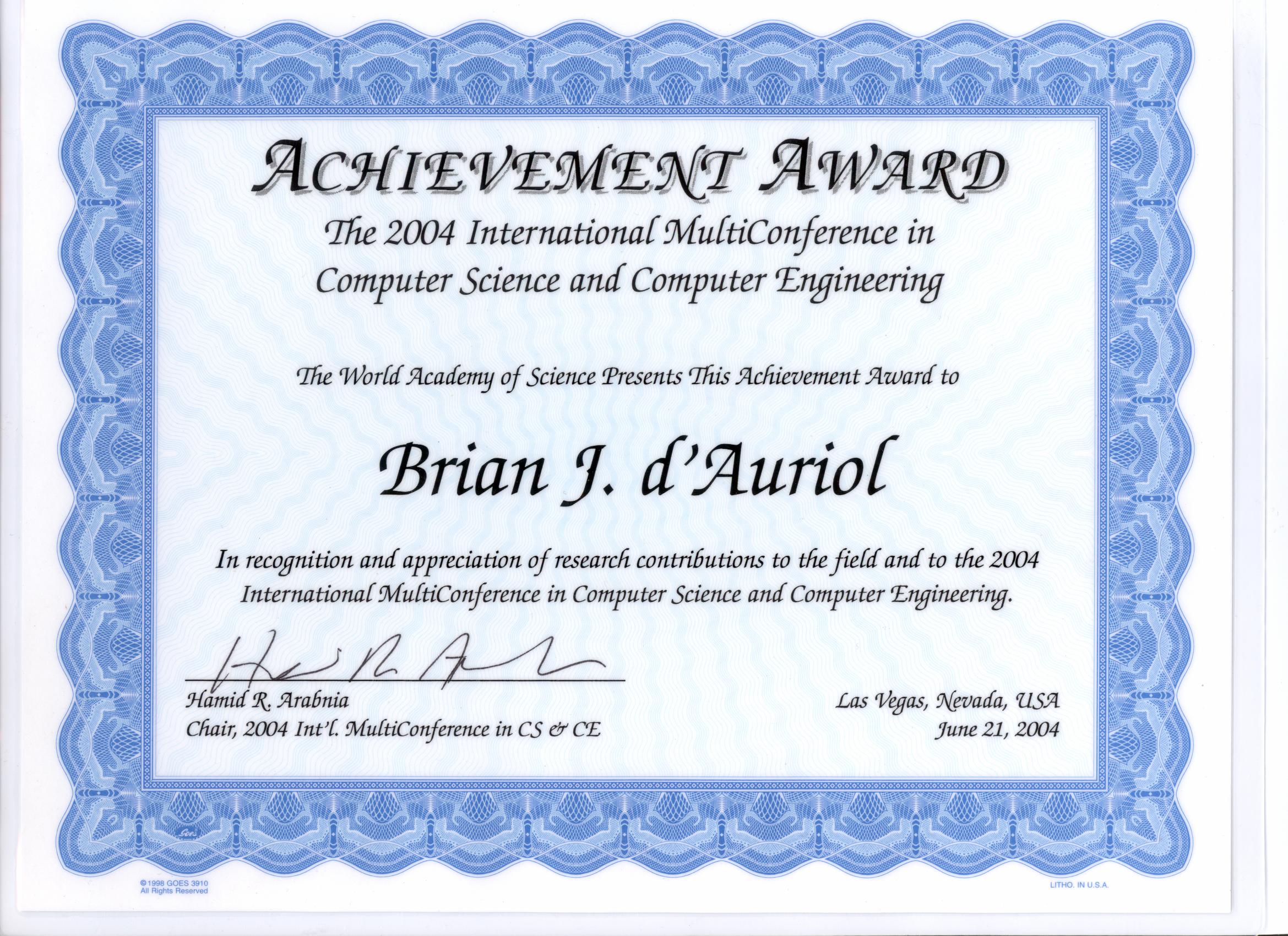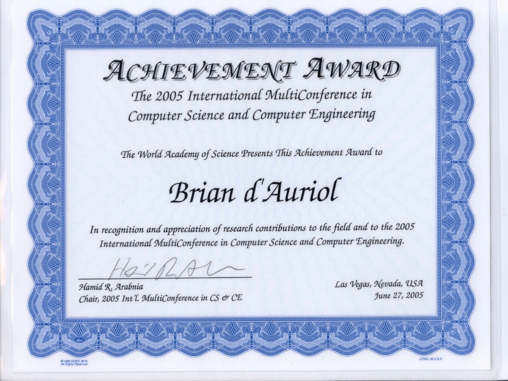 - Achievement Award: The 2006 World Congress in Computer Science, Computer Engineering, and Applied Computing